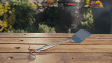 Cu BBQ Spatula Monaco+, ai mereu control total atunci când gătești la grătar. Fie că întorci burgeri, fileuri de pește sau legume, această spatulă robustă face totul mai simplu. Mânerul lung îți protejează mâna de căldură, iar muchia plată, rotunjită, împreună cu modelul unic în formă de diamant, oferă o aderență suplimentară. Fabricată din oțel inoxidabil și compatibilă cu mașina de spălat vase, spatula îmbină perfect funcționalitatea cu stilul.