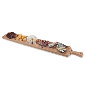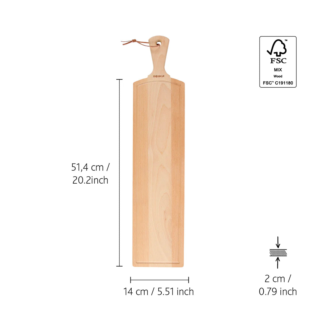 Servește aperitivele preferate cu stil folosind platoul de servire Amigo. Acest platou alungit este realizat din lemn de fag tratat cu ulei natural, oferind un aspect cald și rustic. Datorită mânerului rezistent și șnurului din piele, îl poți agăța cu ușurință – transformându-l nu doar într-un instrument practic, ci și într-o frumoasă decorațiune de bucătărie.