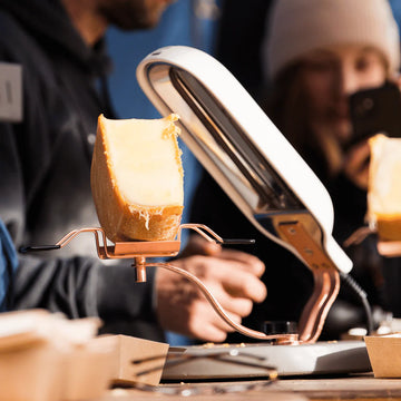 Cu Raclette Quattro Concrete 220V aduci farmecul preparatului tradițional elvețian în propria casă. Acest aparat de raclette stilat (220–240V, tip priză F), cu finisaj retro cupru și bază din beton, atrage toate privirile pe masă. Fie că gătești pentru prieteni sau îl folosești într-un cadru profesional, acest câștigător al unui premiu de design oferă întotdeauna o experiență memorabilă.