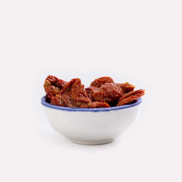 Roșii uscate conservate în ulei, cu aromă intensă și textură moale. Ideal ca aperitiv, tapas sau alături de preparate principale. Se potrivesc perfect cu salate și paste.