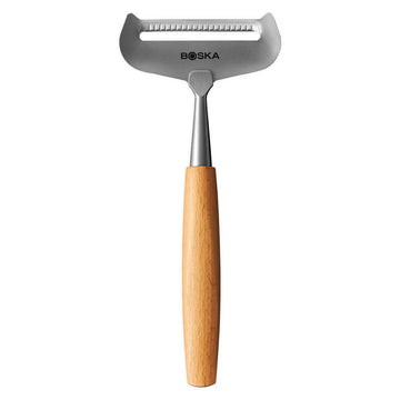 Feliatorul pentru brânzeturi moi Amigo este instrumentul ideal în bucătăria ta pentru brânza tânără. Acest feliator din oțel inoxidabil, cu mâner din lemn, are un tratament extra antiaderent, permițându-ți să obții felii perfecte fără efort. Odată ce îl încerci, nu vei mai dori altul!