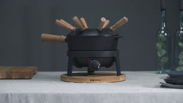 Electric Fondue Set Pro îmbină perfect funcționalitatea, stilul și durabilitatea pentru următoarea ta seară de fondue. Cu un design atent conceput și realizat din fontă de înaltă calitate și lemn de stejar european, acest set transformă experiența culinară într-una memorabilă.