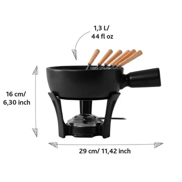 Dimensiune optimă: Capacitatea de 1,3 litri (aprox. 875 g de brânză topită) sau 2,2 litri este perfectă pentru o masă completă în 4/8 persoane sau o gustare delicioasă pentru 8/12.