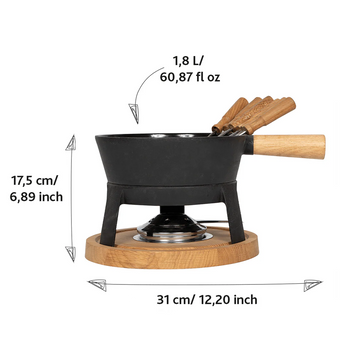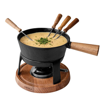 • Materiale premium: Fonta reține căldura pentru mai mult timp, menținând fondue-ul cald și savuros, iar mânerele din lemn de stejar ale furculițelor adaugă o notă naturală și elegantă.