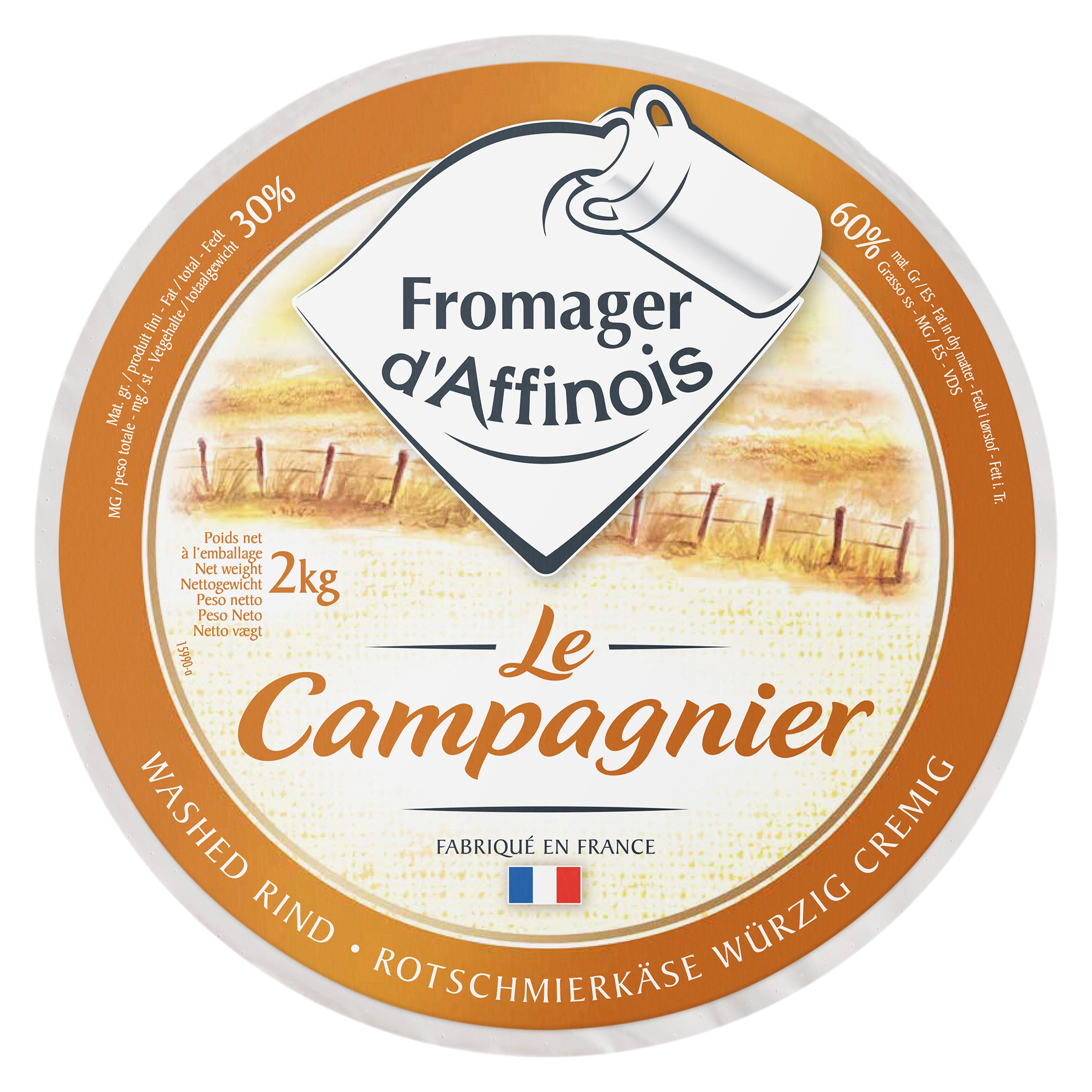 Fromager d’Affinois Le Campagnier este o brânză franțuzească din lapte de vacă, cu pastă moale și coajă înflorită, textură cremoasă și gust echilibrat, ușor rustic, cu note fine de lapte și unt.