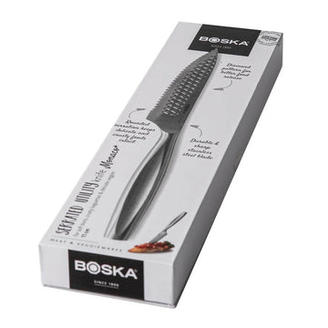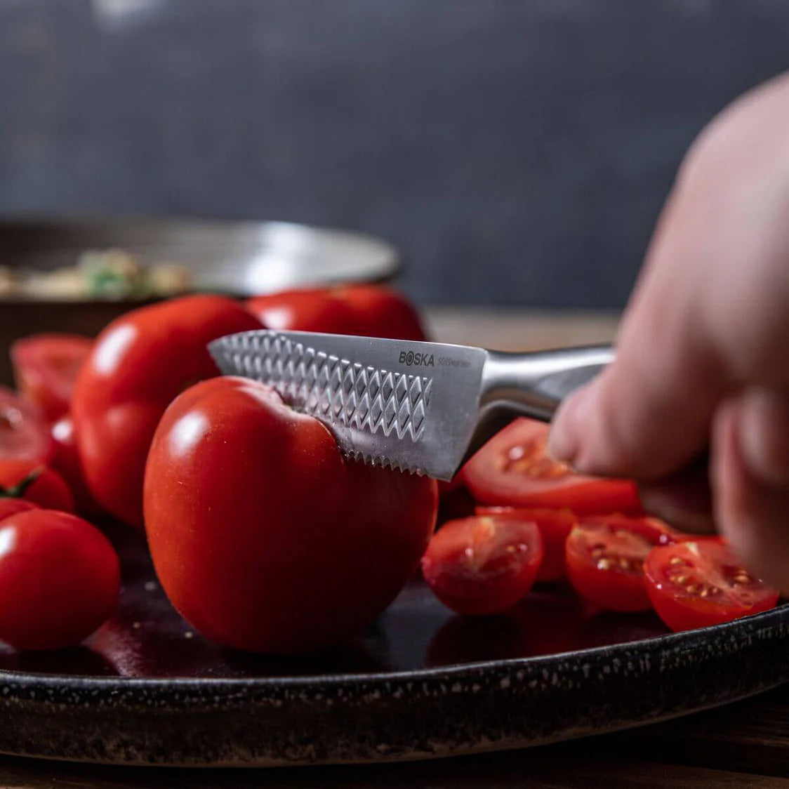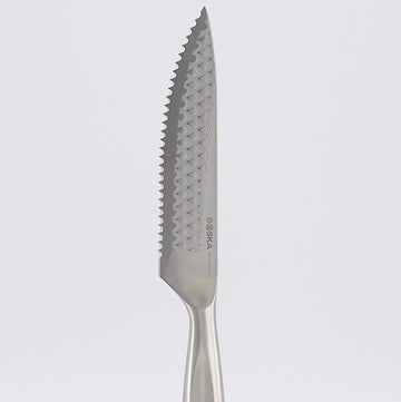 Универсальный нож Monaco+ с зубчатой заточкой (11 см) — незаменимый инструмент на любой кухне, созданный для гурманов, которые ценят точность и качество. Нарезаете ли вы свежий багет, готовите сэндвичи или нарезаете нежные овощи, например, помидоры, этот компактный нож с зубчатой заточкой сделает нарезку быстрой и лёгкой.
