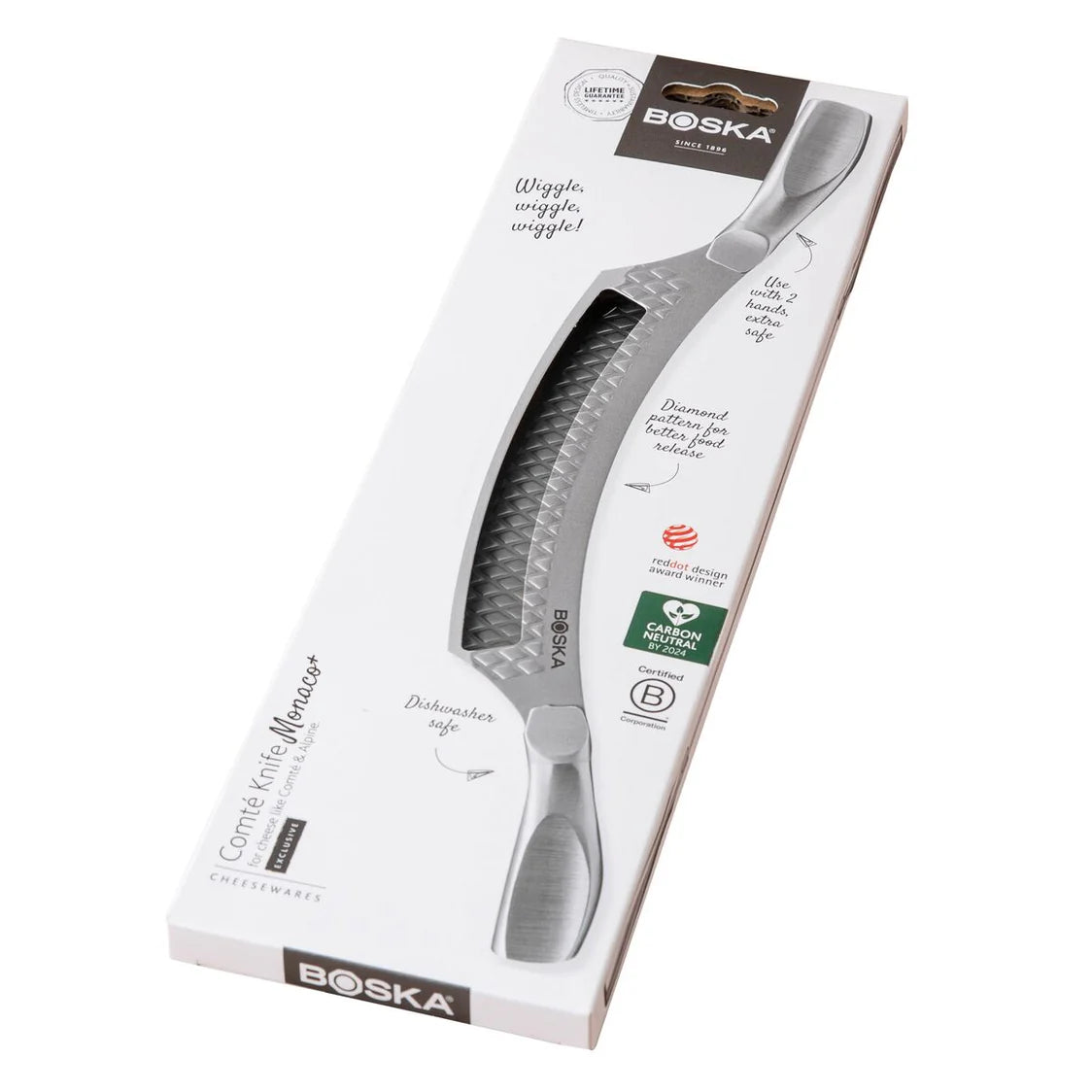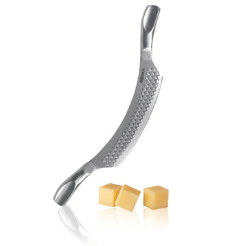 Он предлагает идеальное сочетание мощности, точности и стиля для нарезки полутвёрдых и твёрдых сыров, таких как Конте или альпийский. Этот специальный поворотный нож изготовлен из высококачественной нержавеющей стали и подходит для мытья в посудомоечной машине, что обеспечивает быструю и лёгкую очистку.